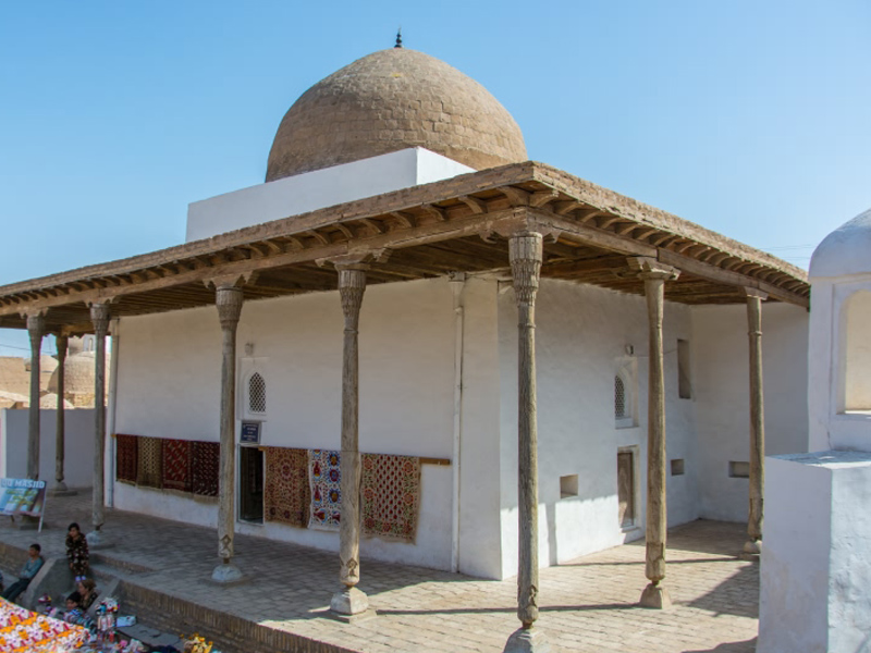 ![]() В ряду зданий Хивы гузарные мечети быстро определить трудно. Потому что, большинство мечетей построены в точности похожими на жилые строения, среди них Ак-мечеть (Белая мечеть) отличается своебразием своей планировки. Наружный вид мечети, окружающий её с трёх сторон тенистый айван, три двери однокупольного здания свидетельствуют, что мечеть является местом сбора общины.
